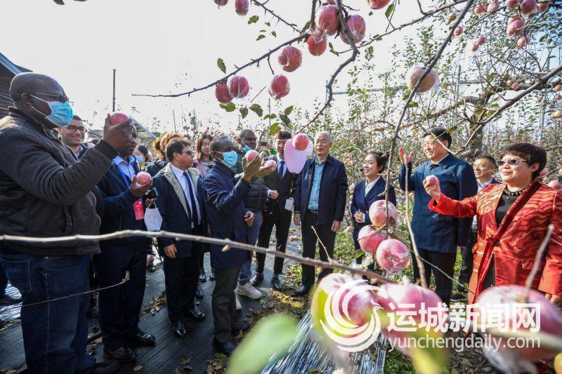本报讯(记者 韩维元)“WanRong apple is wonderful!”10月16日,第六届山西(运城)国际果品交易博览会期间,由津巴布韦、突尼斯、巴拿马等七国驻华使节组成的外宾考察团,在万荣县苹果主题公园参观,品尝万荣苹果后,情不自禁地发出了这样的赞赏。