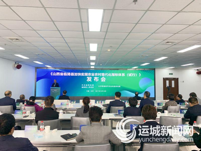 10月10日,临猗县联合北京凯德现代农业科技研究院,在北京召开发布会,发布了《山西省临猗县加快实现农业农村现代化指标体系(试行)》(以下简称《指标体系》),成为在全国县域率先发布农业农村现代化指标体系的县。