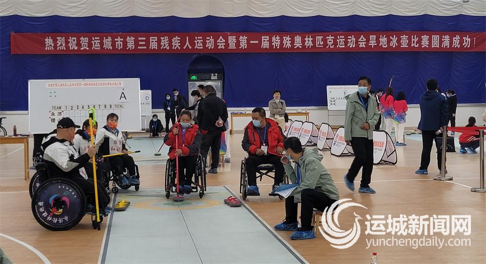 运城晚报讯(记者 范楚乔)10月19日,运城市第三届残疾人运动会暨第一届特殊奥林匹克运动会旱地冰壶比赛,在位于临猗县的华舰动体气膜馆开赛,来自13个县(市、区)代表队的180名残疾人选手展开角逐,展现自我风采。