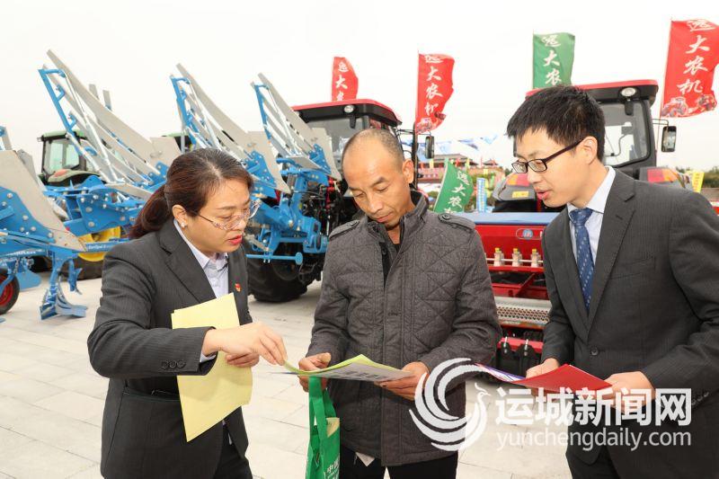 10月18日,农业银行运城分行的工作人员向购买农机的农户宣传该行惠农E贷产品。