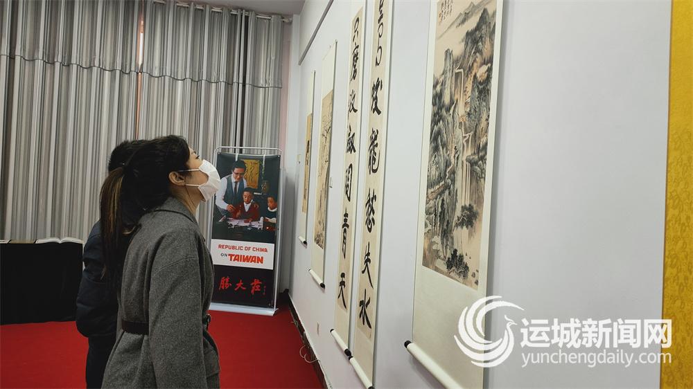 第二届山西(夏县)卫夫人书法艺术节作品展上,“胜大庄”文化展区展示了齐白石《抱婴图》、张大千《青绿山水》、徐悲鸿《大对联》、于右任《寿》等多幅作品,吸引了不少书法爱好者前来观看。