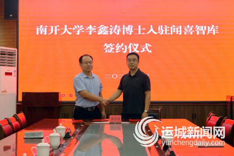 近日,闻喜县举行高校专家入驻闻喜智库签约仪式,南开大学李鑫涛博士入驻闻喜智库担任闻喜县委政研室专家顾问。这标志着该县在深化县校合作、共建“12大基地”上取得了新进展。