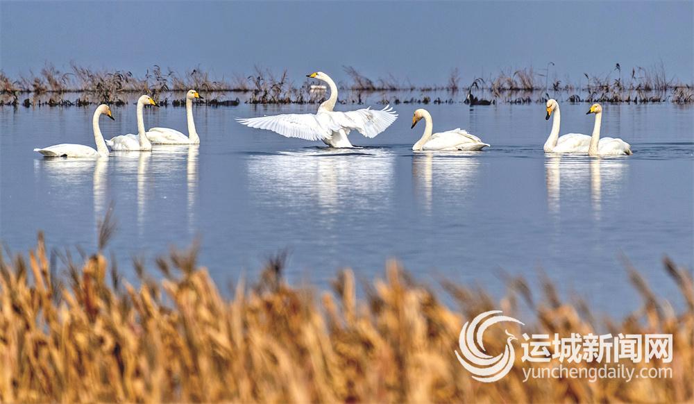 近日,随着天气的变化,白天鹅陆续从西伯利亚飞临我市盐湖栖息越冬。它们在这里嬉戏、觅食,让这里成了美丽的“天鹅湖”,为冬季的盐湖增添一份和谐与灵动。 记者 薛俊 摄