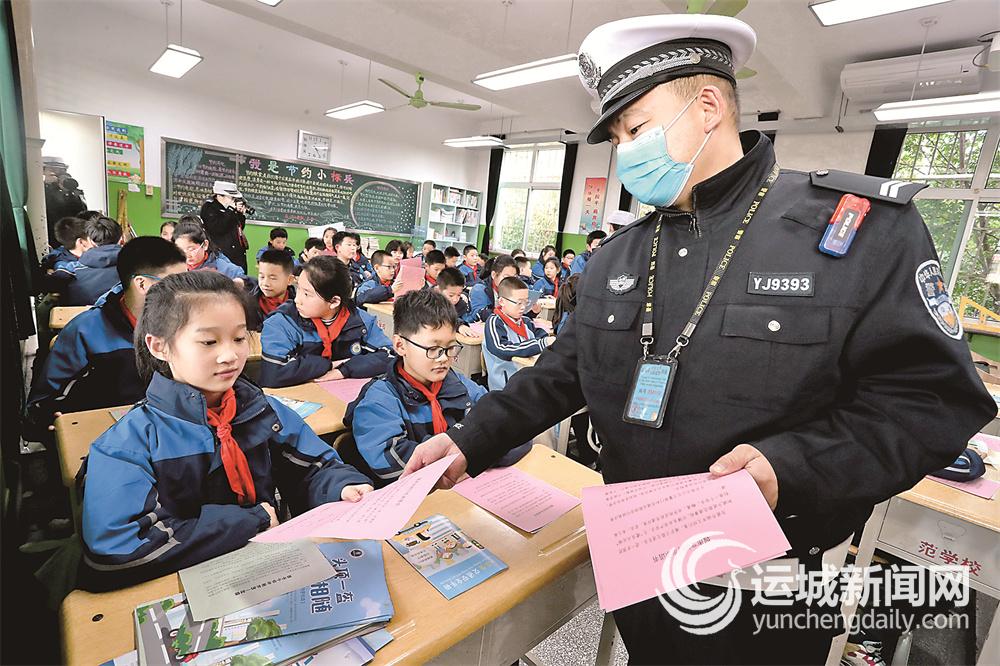 运城晚报讯(记者 张萌芝)10月26日,盐湖交警大队宣传科和三中队民警走进辖区解放路示范学校,开展“五个一”交通安全宣传活动。