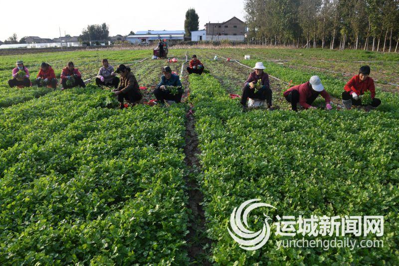 10月28日,闻喜县裴社镇大泽村村民收割香菜,准备发往市场。