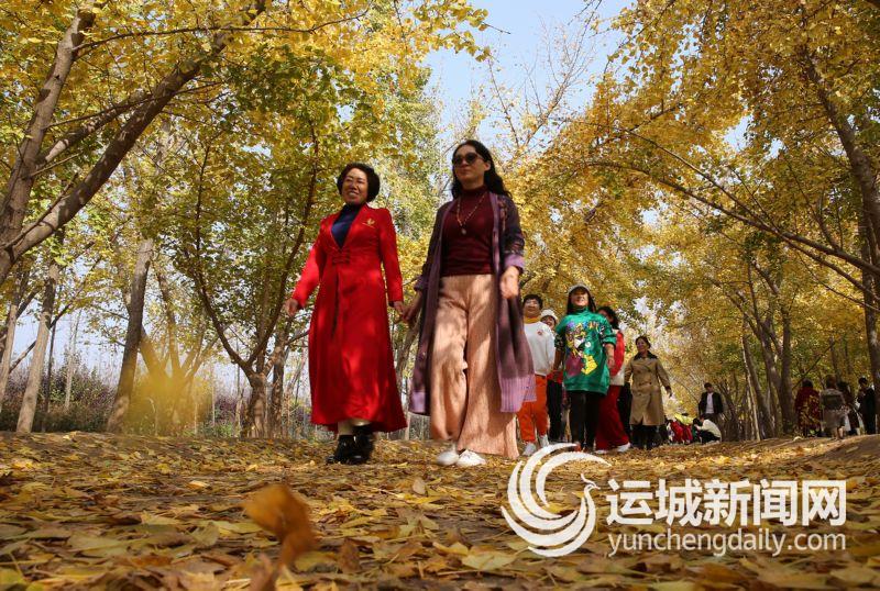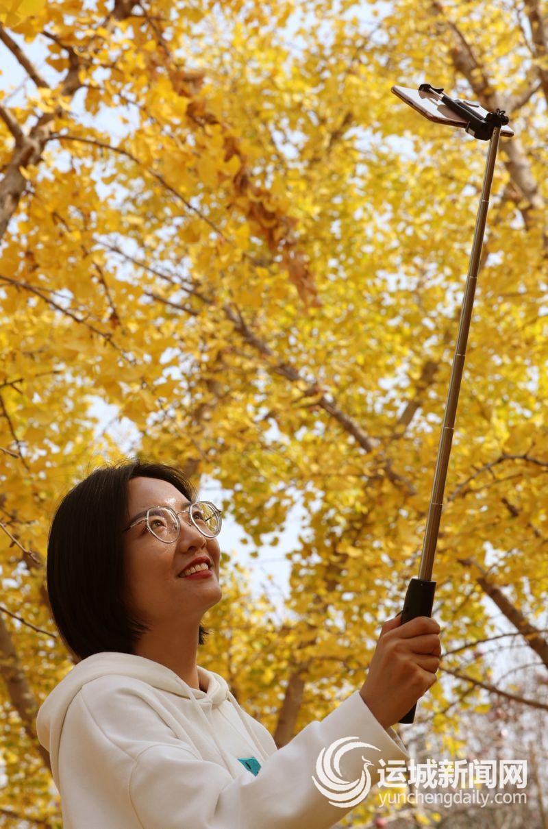 10月30日,秋高气爽,风和日丽,临猗县三管镇卓氏银杏源里,到处是赏叶的游人。你,打开心扉,开始网络直播;她,张开双臂,享受自然的恩赐;我,不停用手机记录一个个精彩瞬间。你们,忘却了平日的羞涩,尽情地跳起了舞蹈;她们,在圆着自己一直坚守的模特梦;我们,一起追忆那年轻时的光阴。更有那无忧无虑的儿童,在感知世间之美;暮年的老者,忙着追赶时光。我想,这就是黄叶给予我们的爱!就像一首歌里唱的“我真的还想再活五百年……”这就是生活在这个时代的我们的心声。