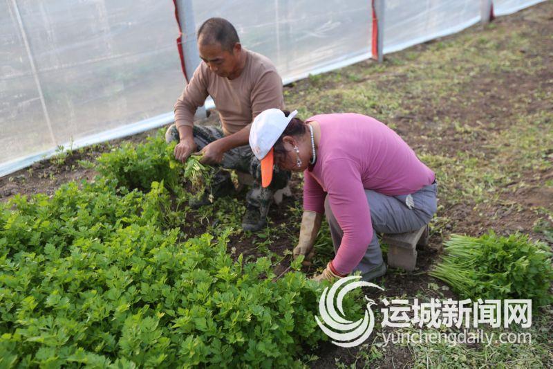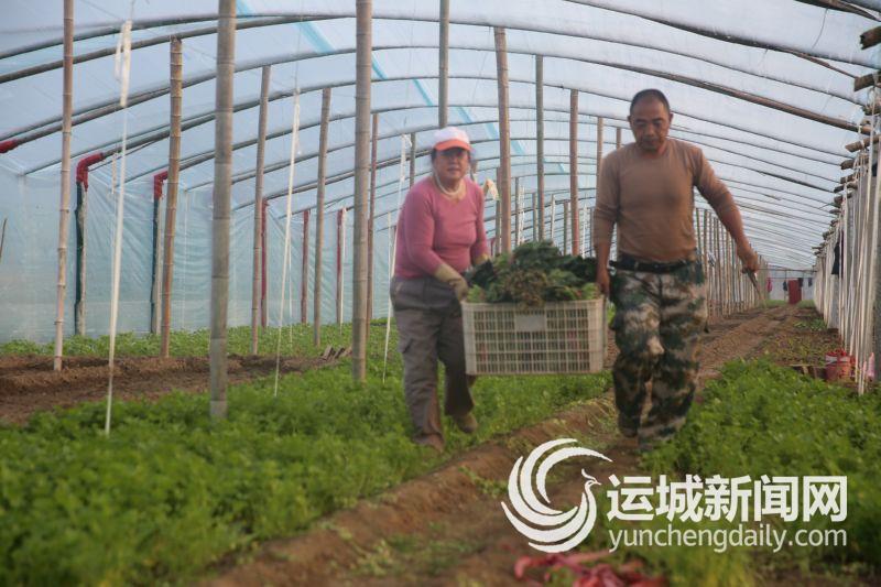 10月31日,永济市城东街道马铺头村,菜农廉向阳、陈俊梅夫妇,在自家菜园里,忙着采收和搬运菠菜、芹菜等绿叶菜。