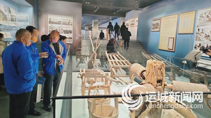 “唐宋时期,盐池的制盐工艺得到重大改进,形成了垦畦浇晒的人工制盐方法,这在世界制盐史上首开先例,意义重大,是运城盐池盐业生产工艺改革新的里程碑……”11月3日,卫高玠(下图左二)在河东池盐博物馆内向一起参观的人介绍说。