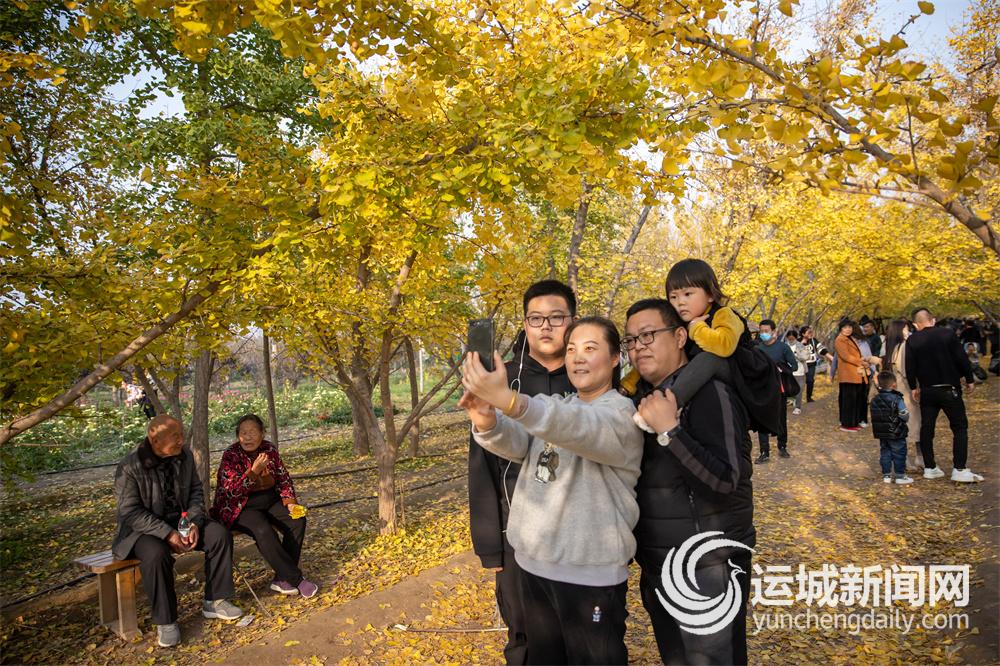 近日,临猗县三管镇大片金黄的银杏林进入了最佳观赏期,吸引了周边地区的游客前来观赏。每年霜降过后,当地2000多颗银杏树的树叶变得金黄,景色宜人。浓浓的秋意中,游客们或从林中走过,或在树下徘徊,流连沉醉在一片金黄的世界中。