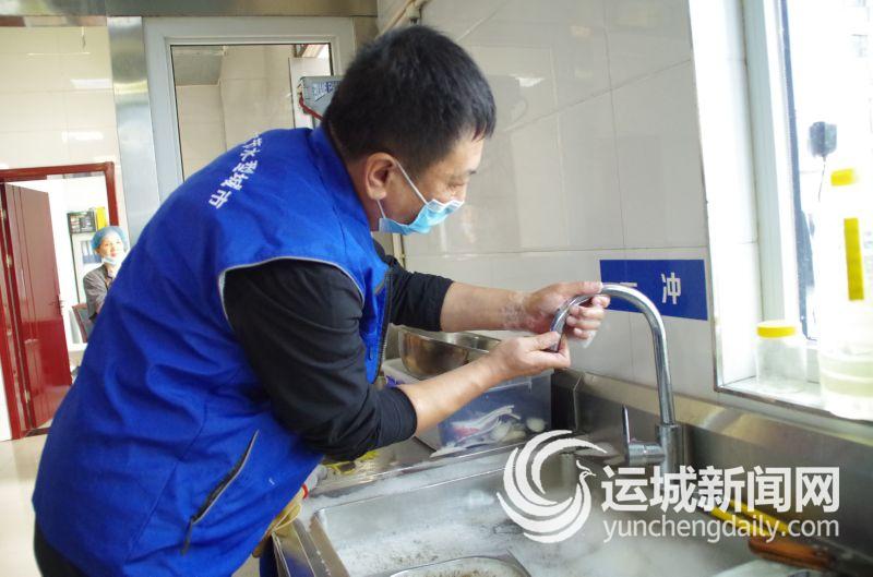 近日,在运城市党纪教育基地,该中心工作人员对不符合节水标准的龙头水嘴进行拆除,安装龙头水嘴节水器,并在水龙头附近张贴了节约用水的倡议标志。