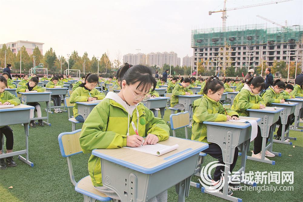 万荣县示范小学学生进行硬笔书法展示 记者 杜磊 摄