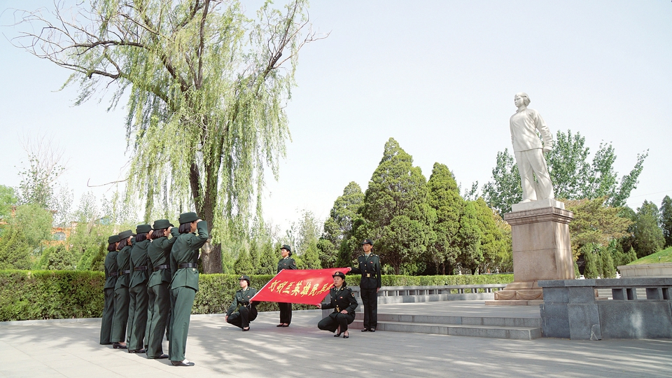刘胡兰英雄民兵班集体宣誓。