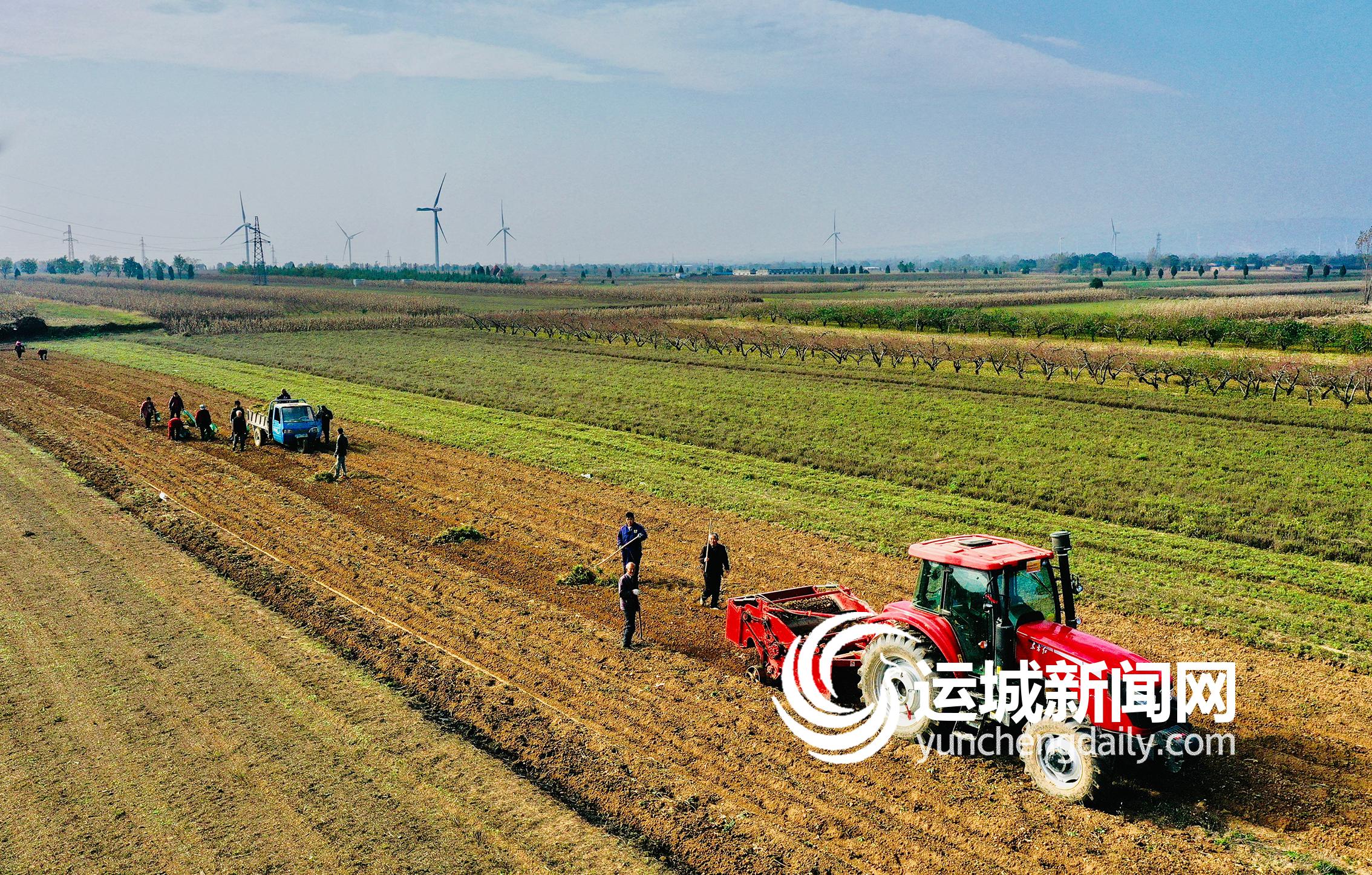 11月10日,平陆县张店镇侯王村村民利用挖药机抢收中药材柴胡。