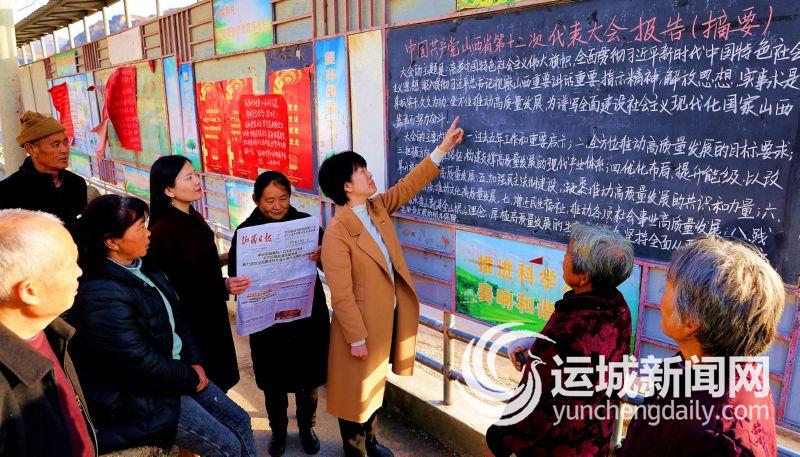 11月11日,省第十二次党代会代表、夏县水利发展中心主任胡莉荣在给群众宣讲省第十二次党代会精神。