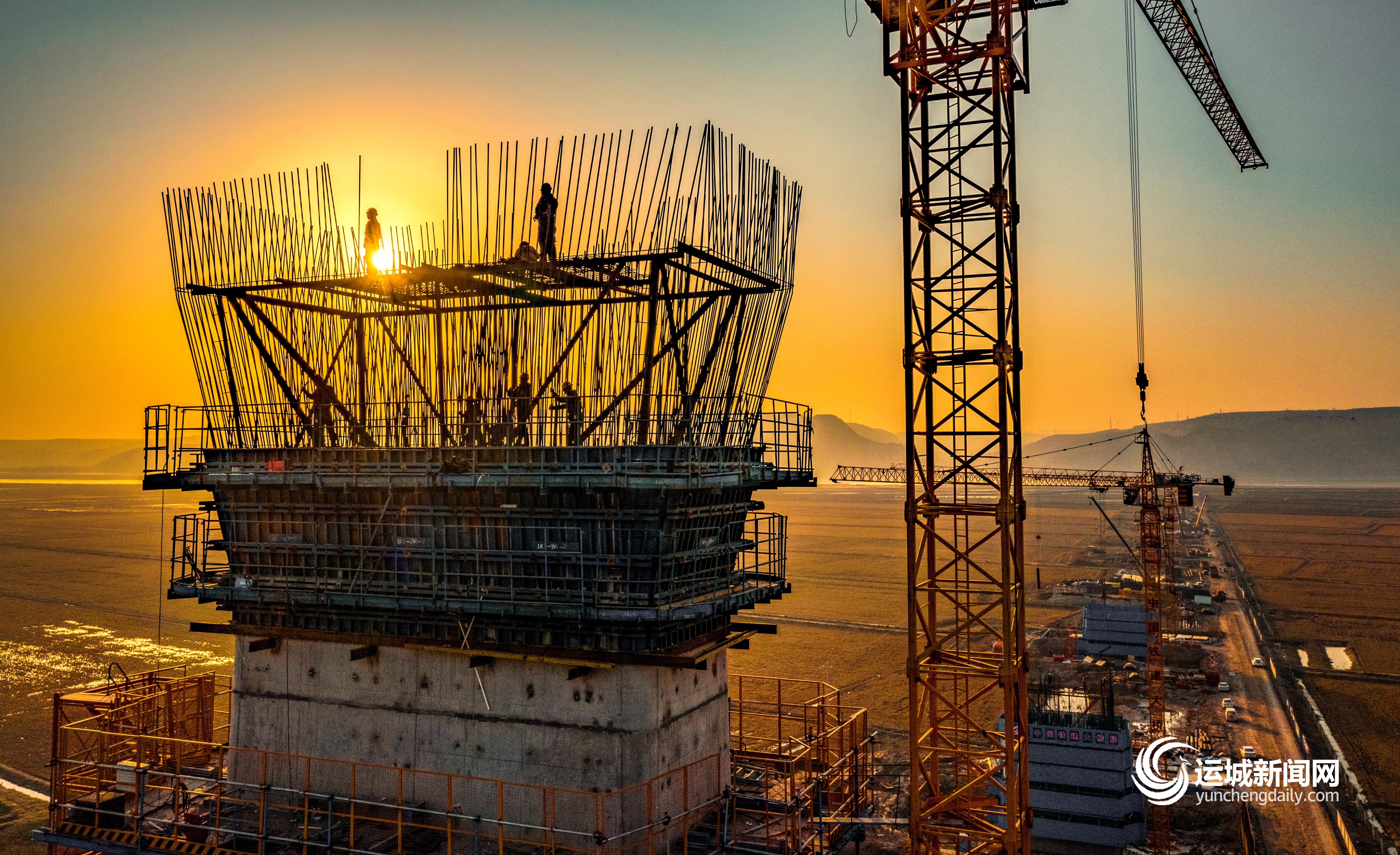 ▲11月13日,中国铁建大桥工程局集团有限公司临猗黄河大桥LY-02标段项目经理部施工人员在加紧施工。