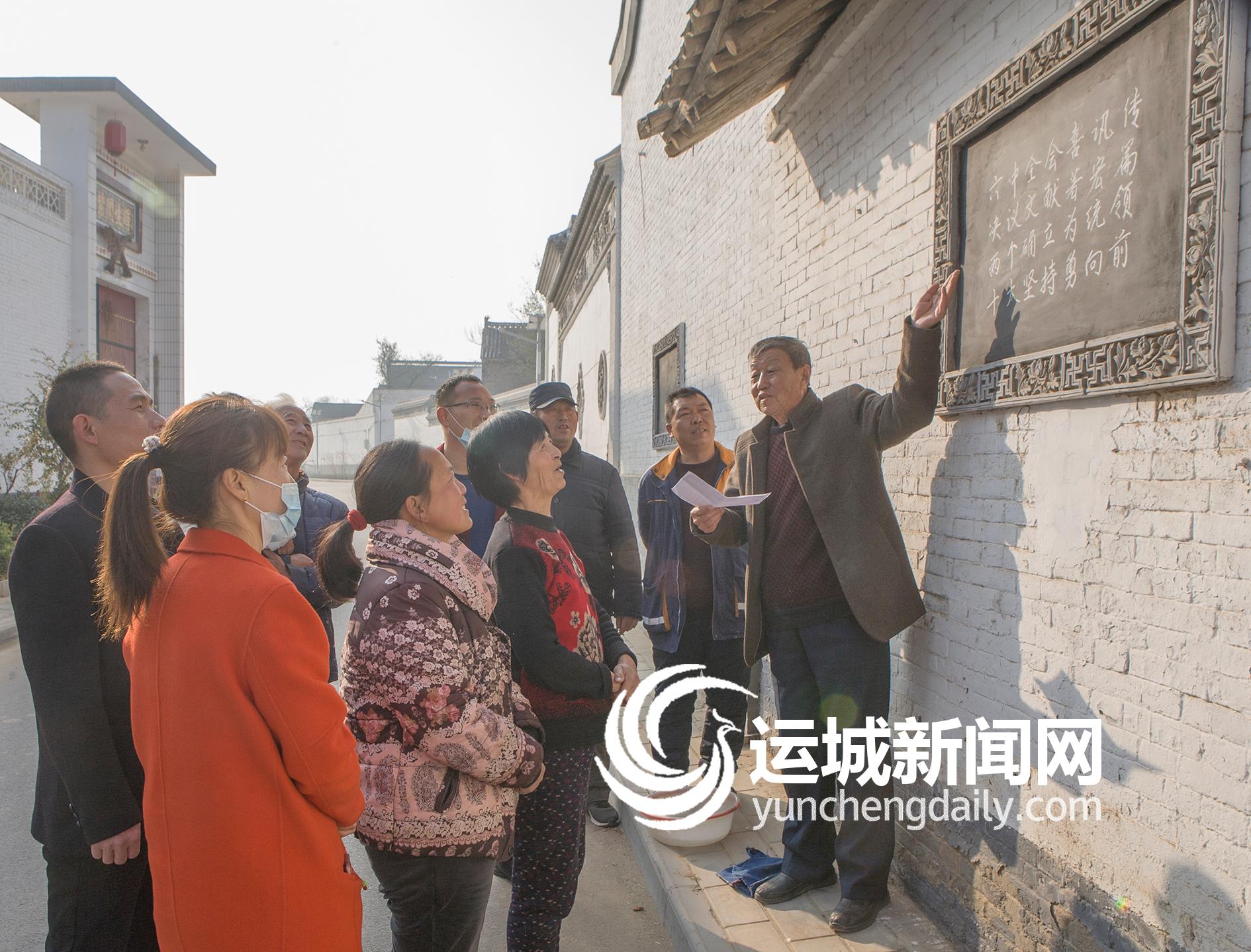 此前,新华社发布《中共中央关于党的百年奋斗重大成就和历史经验的决议》,退休干部薛吉生认真学习领会,并连夜编写了10多首通俗易懂的墙头诗,第二天便开始在巷道的小黑板上书写宣传。40多年来,100多块小黑板在该村改革开放和美丽乡村建设上一直发挥着独特的宣传作用。