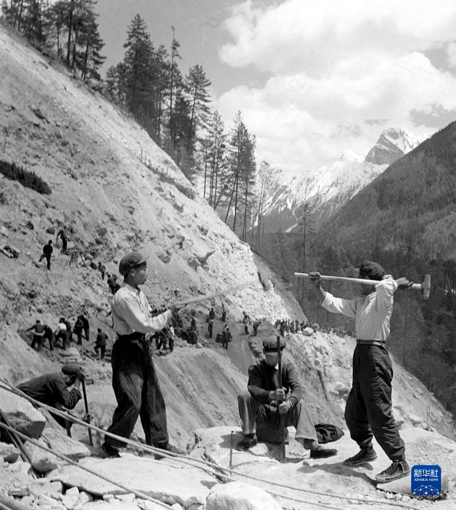 这是1954年筑路大军修筑康藏公路(1955年改名为川藏公路)的资料照片。新华社发