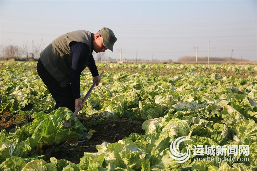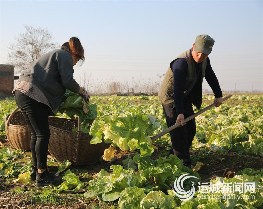 11月18日,永济市城东街道办事处新街村,村民在田间收获大白菜。 初冬时节,永济市各村镇的萝卜、大葱、冬瓜等优质蔬菜,陆续进入一年一度的丰收季,菜农们忙着采摘、打包、拉运,供应北京、西安、太原等大中城市的冬储菜市场。特约摄影 薛启涛