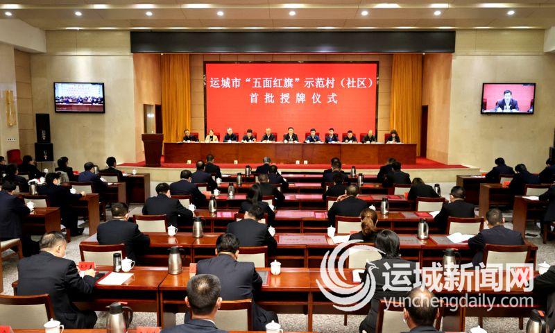 授牌仪式上,38个村(社区)被授予“五面红旗”示范村(社区)称号;河津市、稷山县翟店镇、永济市城西街道、临猗县嵋阳镇嵋阳村、盐湖区东城街道府东街社区等作发言。