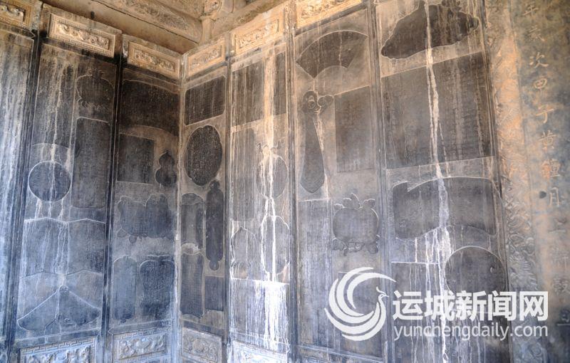除主碑外,其余14通碑刻如屏风式布局,分别镶嵌于亭内南、东、北3面。
