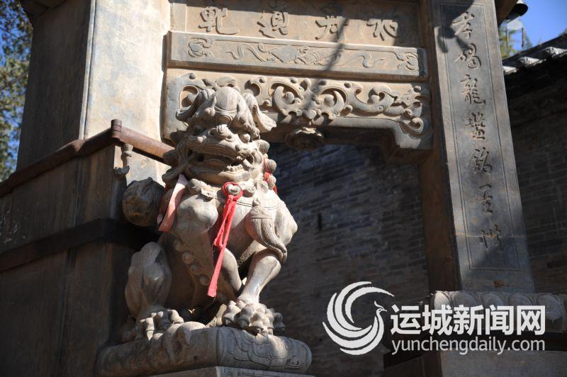 这里的石狮与众不同。雄狮抱着绣球,雌狮背着幼狮,蹲坐在牌坊两侧前腿呈交叉状,意为内敛。这样形态的石狮,别处罕见,其寓意子嗣绵长、多子多福。