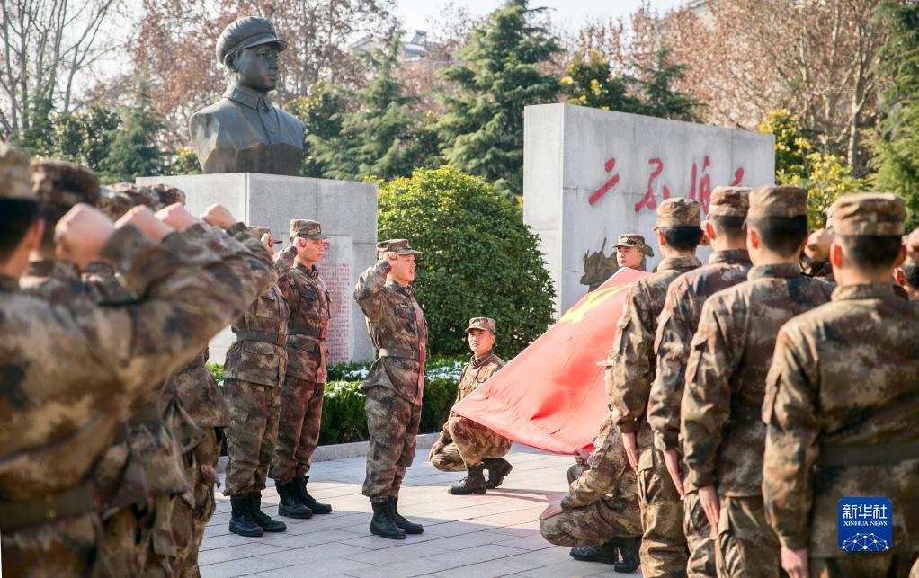 陆军第71集团军某合成旅王杰生前所在连官兵组织党员重温入党誓词(2018年12月14日摄)。新华社发(白俊峰 摄)