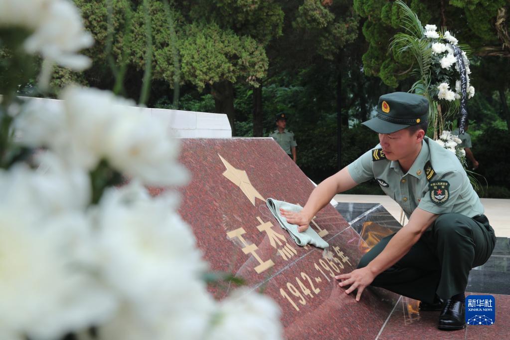 在王杰牺牲54周年前夕,陆军第71集团军某合成旅“王杰班”组织祭扫(2019年7月10日摄)。新华社发(李志浩 摄)