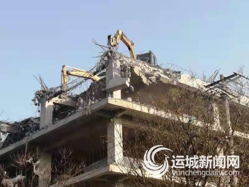 运城晚报讯(记者 祁克宁)11月25日,在市区学苑北路阳绻村附近,市城市管理综合行政执法队组织人员和大型机械,对一处村民自建房违规加盖层进行拆除(上图)。