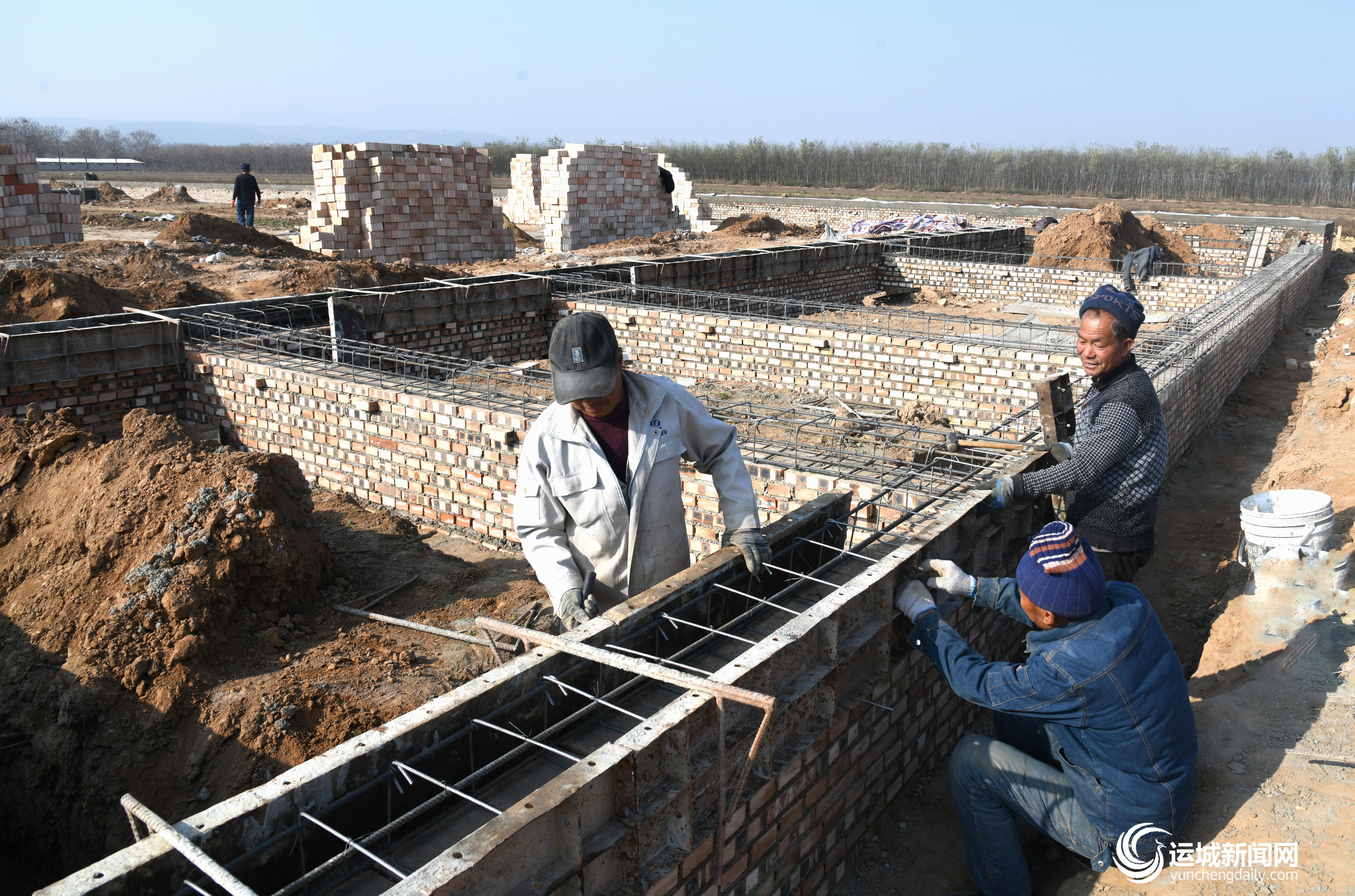 11月27日,闻喜县阳隅镇水果保鲜库项目建设工地,工人在加紧施工。