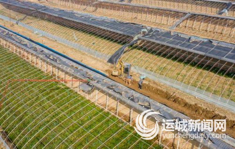 11月26日,闻喜县后宫乡柏底村蔬菜产业示范园,村民在加固暖棚。