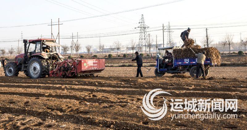 11月25日,万荣县万河中药材种植有限公司在该县南张户村药材基地,用机械收获黄芩。