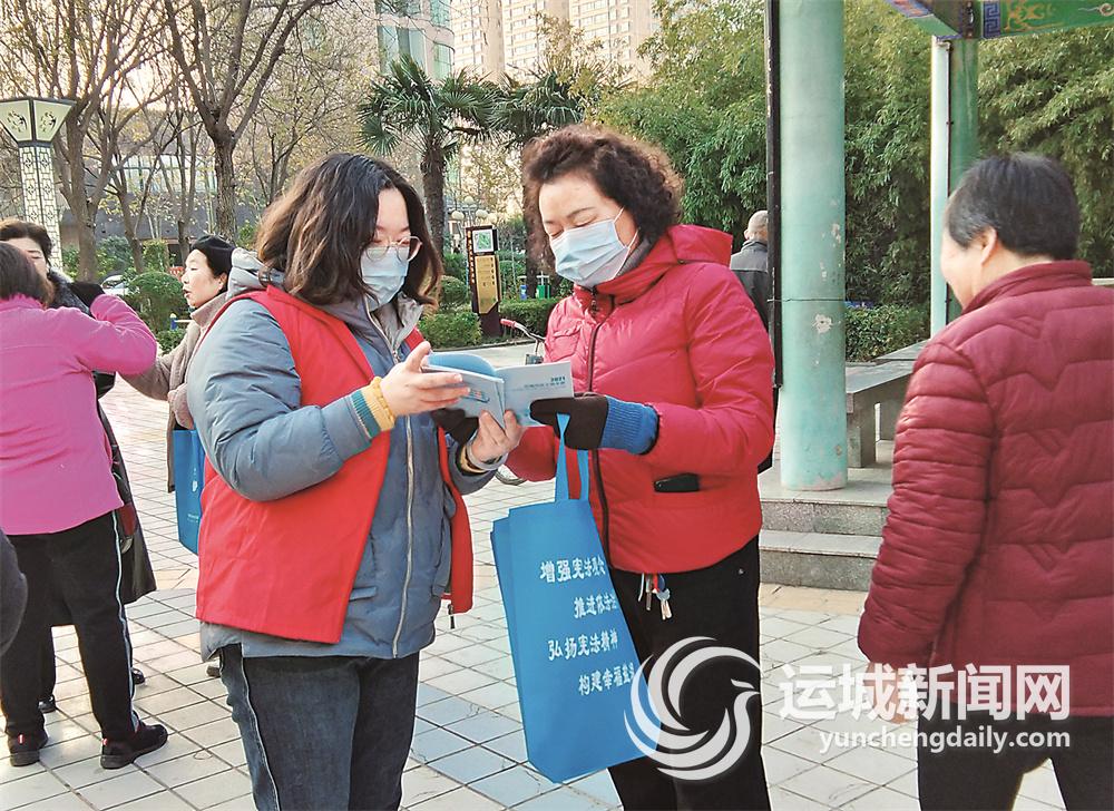 运城晚报讯(记者 范楚乔)12月3日,盐湖区东城街道学苑、名邸、槐东、禹都花园、中银街、金鑫6个社区,联合在市区天泰文化苑广场,开展宪法进社区主题活动及志愿服务活动。