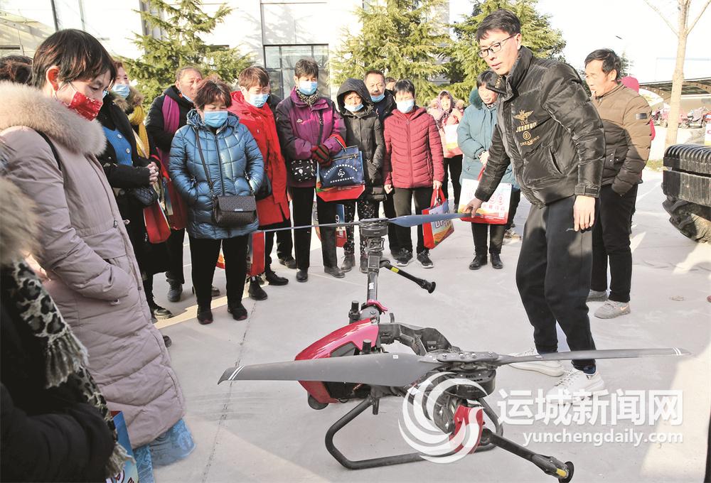 ▲12月2日,永济市丰田农机专业合作社聘请无人机专家,向该市栲栳镇的农民传授无人机的驾驶、打药操作等专业知识。