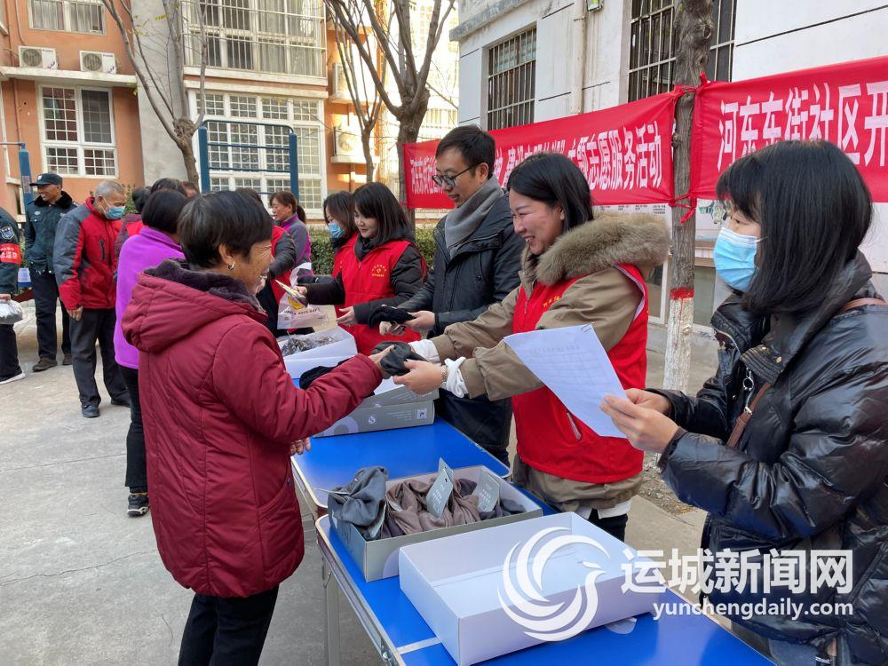 12月3日,盐湖区东城街道河东东街社区为辖区内辛勤工作在一线的保安、保洁等100余人送上防寒礼物,增强他们的获得感和幸福感。