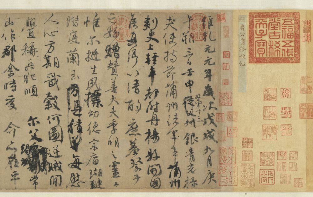 写罢,颜真卿泪流满面,手握蒲笔颤抖不止。眼前这篇祭文因心情悲愤,情绪难平,错写之处增多,时有涂抹。但他不知道,这篇《祭侄赠赞善大夫季明文》被后世书法家给予极高评价,与王羲之《兰亭集序》、苏轼《黄州寒食帖》并称“天下三大行书”。这幅字写得凝重峻涩而又神采飞逸,笔势圆润雄奇,姿态横生,纯以神写。通篇波澜起伏,时而沉郁痛楚,声泪俱下,时而低回掩抑,痛彻心扉,笔笔如血、字字是泪,堪称动人心魄的悲愤之作。