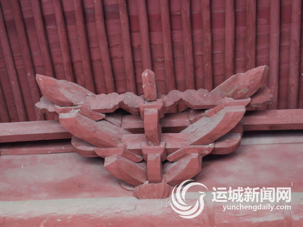 戏台前后檐下柱头的斗栱十分精美,尤其后檐大斗为梅花形,这都是元代建筑的特色。最外围的木梁、木柱被砌在了墙中,可能是后人为更好地保护戏台主体而为。