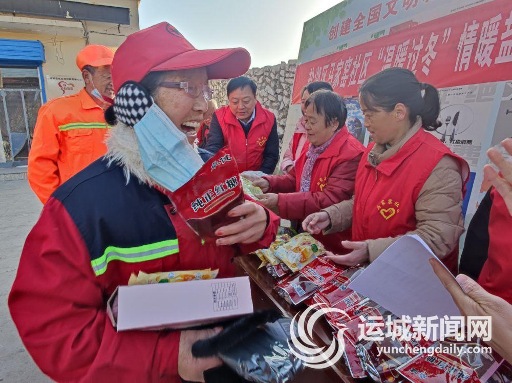 12月2日,在盐湖区南城街道马家窑社区居民活动广场,该社区工作人员及志愿者,将慰问品送到辖区环卫工人、清洁工等手中。