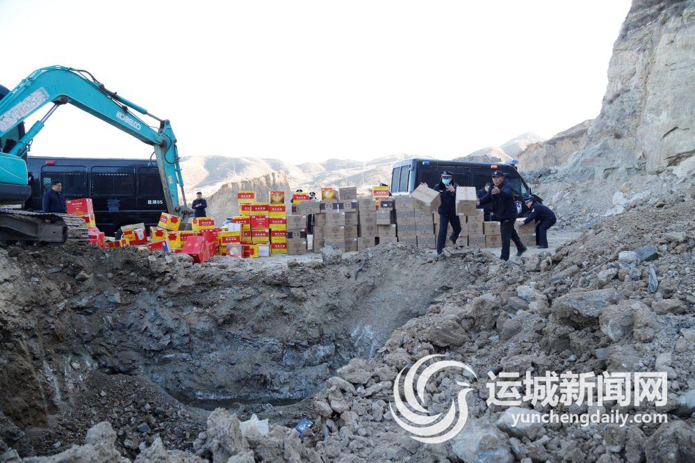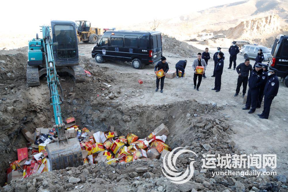 运城晚报讯(记者 樊朋展)近日,市公安局盐湖分局与盐湖区市场监督管理局联合行动,在东郭镇磨河村附近、大渠街道大渠村周边,集中销毁了一批假冒伪劣产品,包括假冒汾酒近300箱、伪劣磷肥1000余袋。