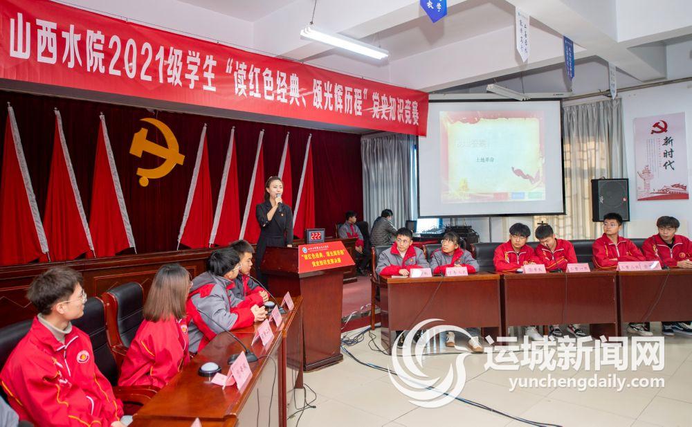 当日,山西水利职业技术学院组织2021级学生举办“读红色经典 颂光辉历程”党史知识竞赛活动。进入决赛的6支代表队在经过必答题、抢答题、风险题3个环节后,决出了一、二、三等奖。活动旨在深化党史学习教育,以赛促学、以学筑魂,引导师生“学党史、强信念、跟党走”。据悉,该项活动从今年10月开始,从2000余名学生中选拔出100人进入复赛。通过复赛比拼,最终有6支参赛队伍、共12人进入决赛。 记者 薛俊 摄