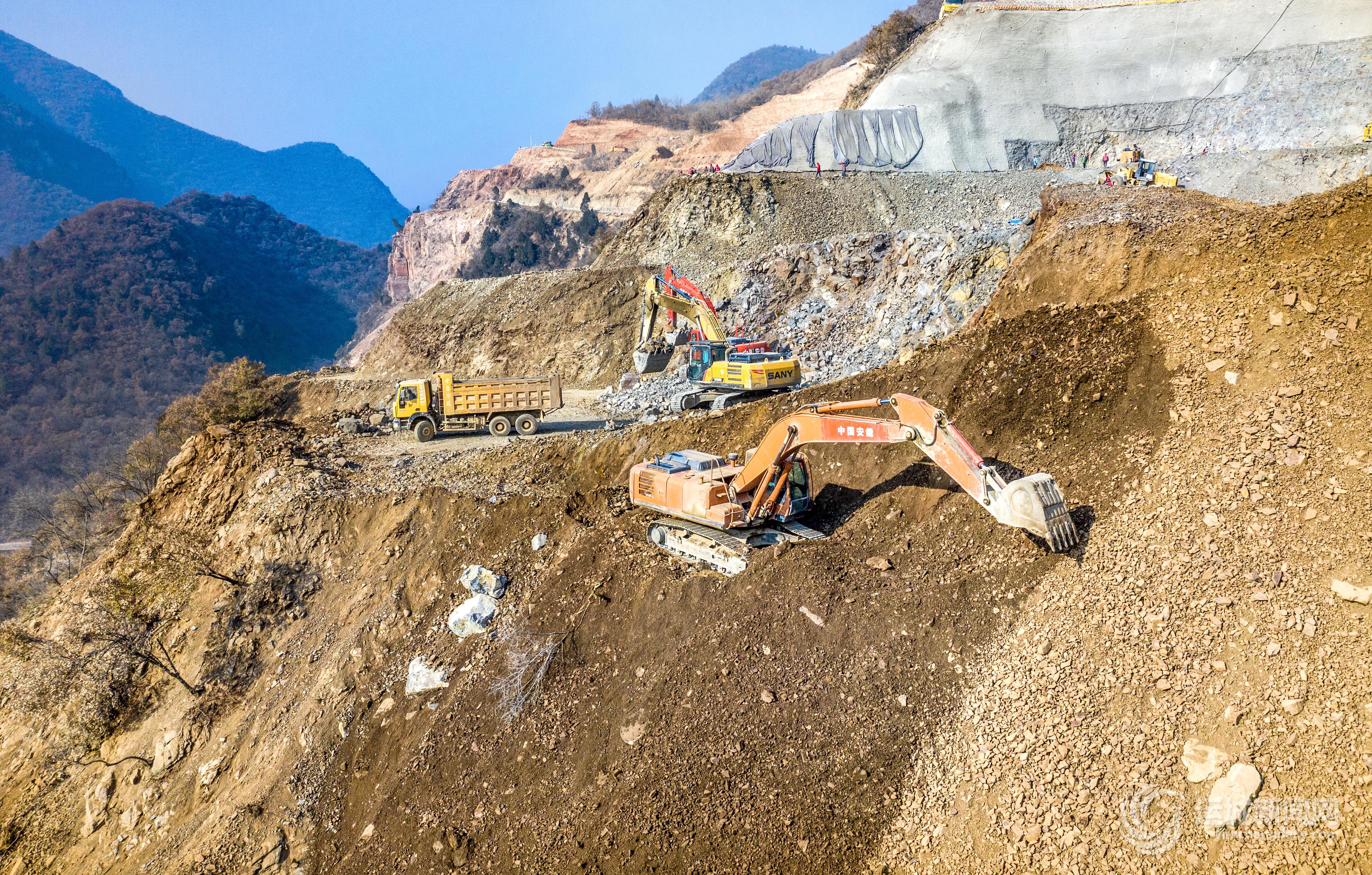 ▲12月9日,施工人员在垣曲抽水蓄能电站项目工地使用大型机械加紧施工。