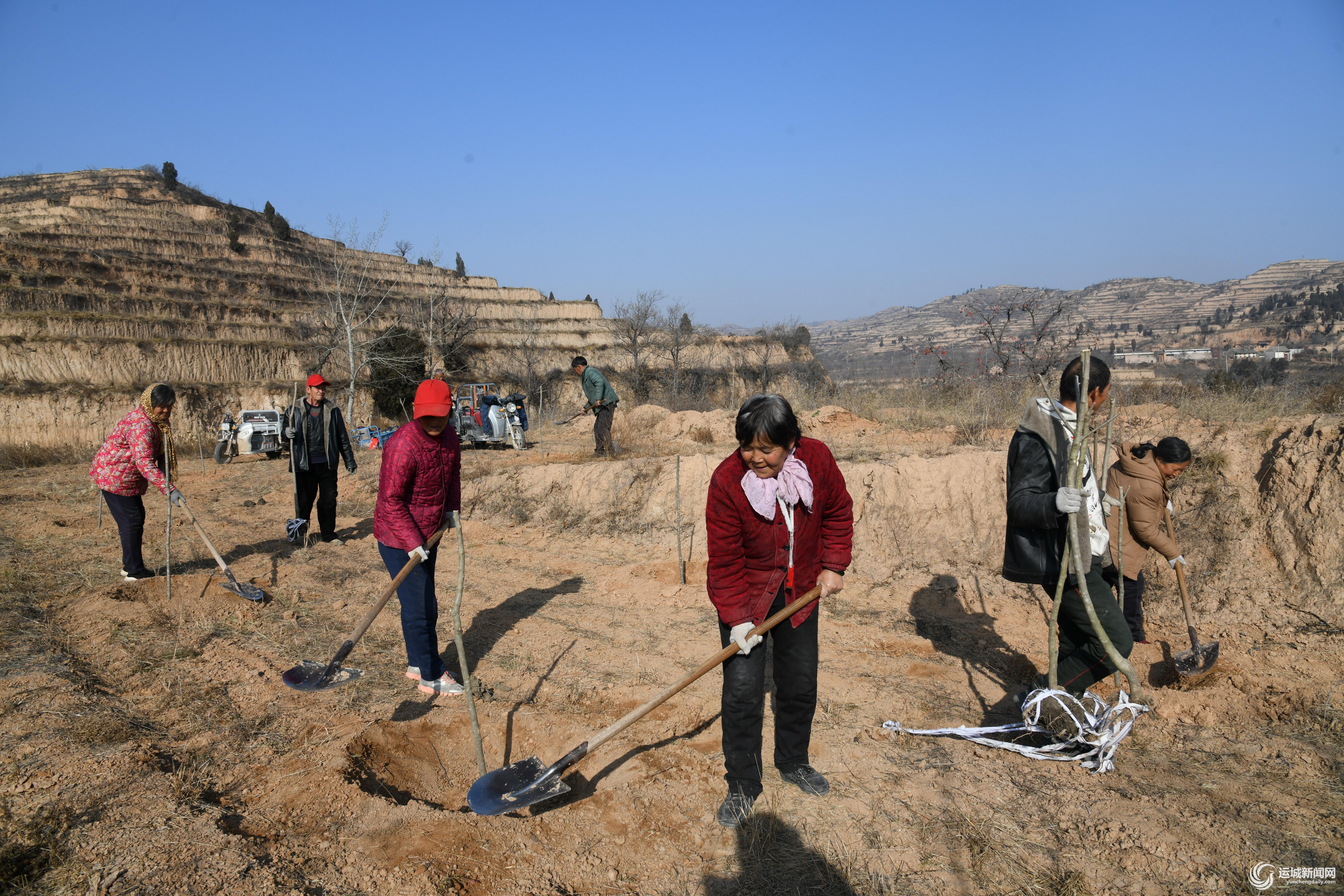 12月14日,在闻喜县郭家庄镇张樊村杜仲基地,当地一家杜仲产业公司组织劳力栽植中药材杜仲。