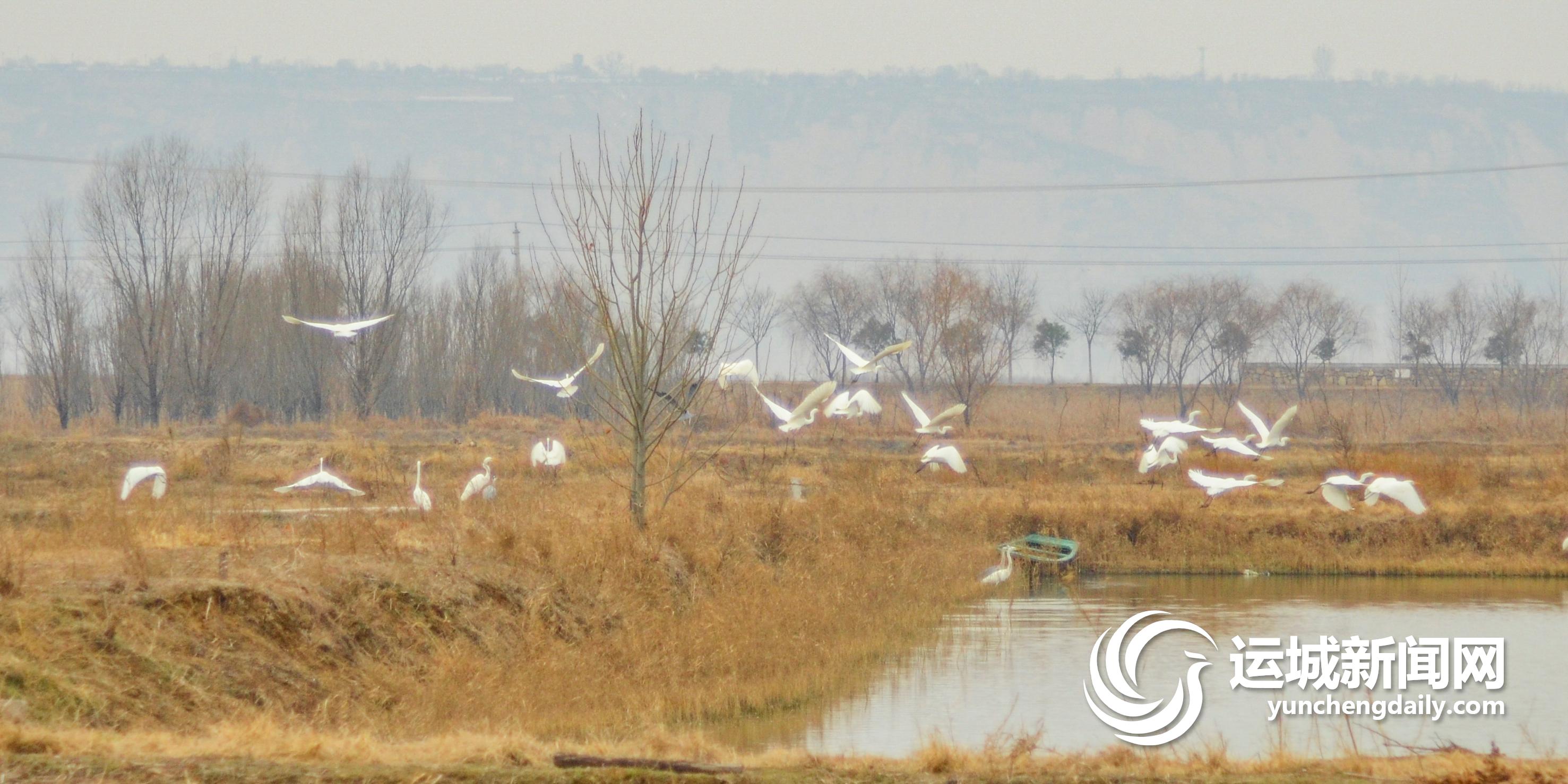 ▲12月13日,一群白鹭在万荣县黄河滩涂翩翩起舞。