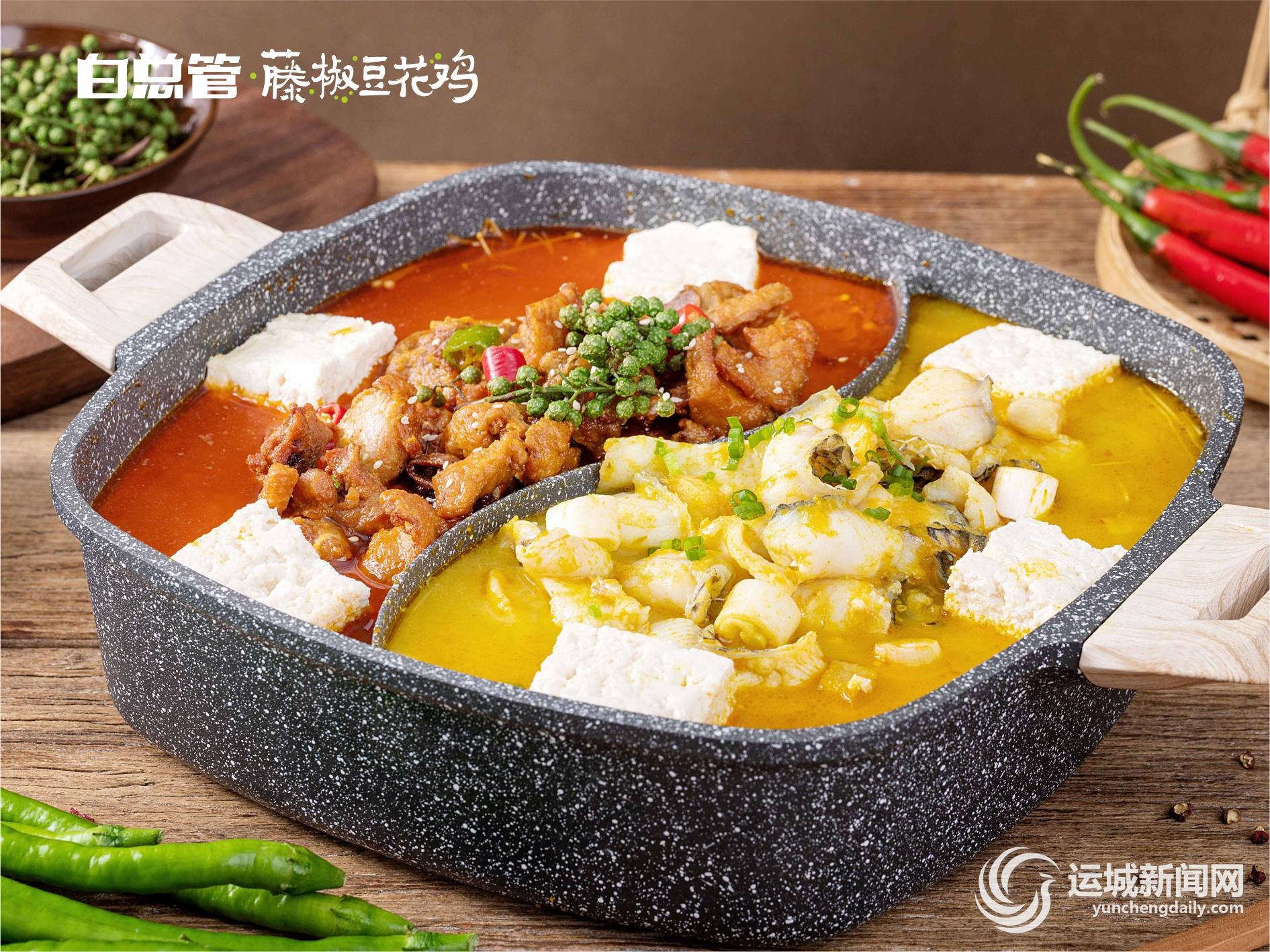 白总管藤椒豆花鸡,一个势如破竹、发展迅猛的“黑马”川菜品牌,上市仅4年时间,便拥有200余家门店。今年,它跨越千里,来到运城的首日,食客排起长龙,只为馋一口这风味独特的川味美食。