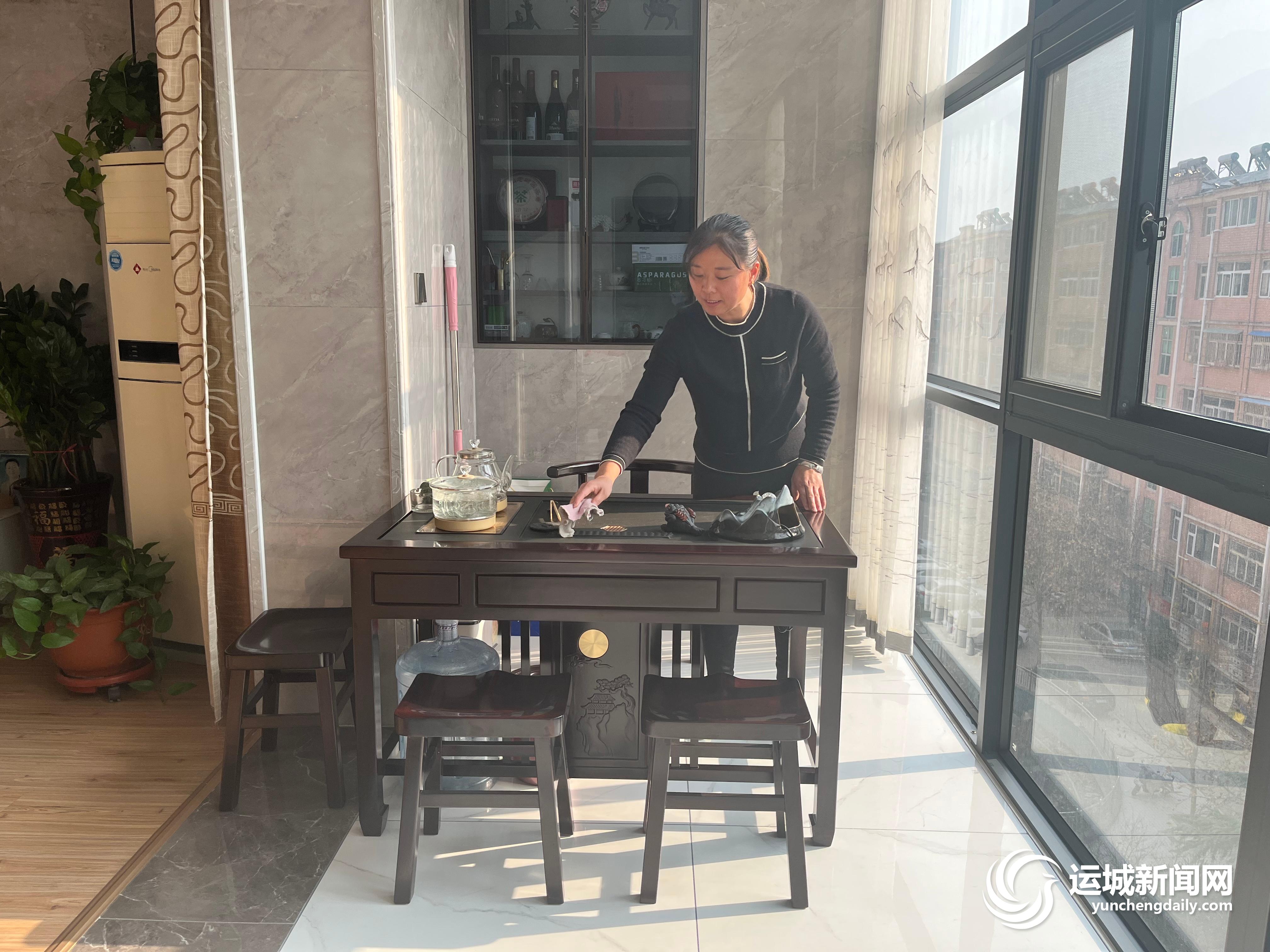 “装电梯之后有了这个阳光房,屋里亮堂多了,美得很!”永济市蒲金苑小区2号楼1单元6楼的市民谢女士说。当天,记者一行乘坐加装好的电梯进入谢女士家中,看到她正在加装的“阳台”上边晒太阳边清洗茶具(右图)。谢女士表示,不仅装了电梯,家里还多了8平方米的阳台,电梯还是平层入户的,和电梯房没有什么区别,采光好了,生活品质都提升了不少。