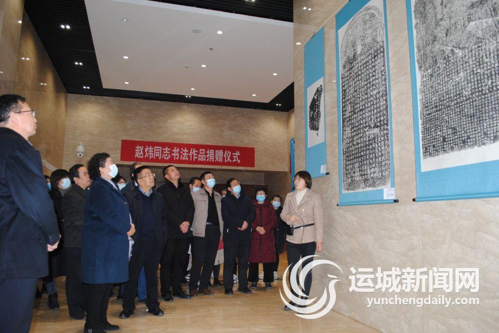 活动当天,知名书法家赵炜向永济市博物馆捐赠了书法作品。永济市纪委监委、市委宣传部去年9月在鹳雀楼举办廉政文化系列活动时,他将自己数十年创作的书法珍品进行展览,受到大家一致好评。赵炜原籍永济市城东街道吴村,工作之余特别是退休后专注研习书法,在行草方面颇有建树。作为一名永济人,他有着深厚的家乡情怀和“舜都蒲坂”的文化基因,这次捐赠,是他对家乡的一次回报。