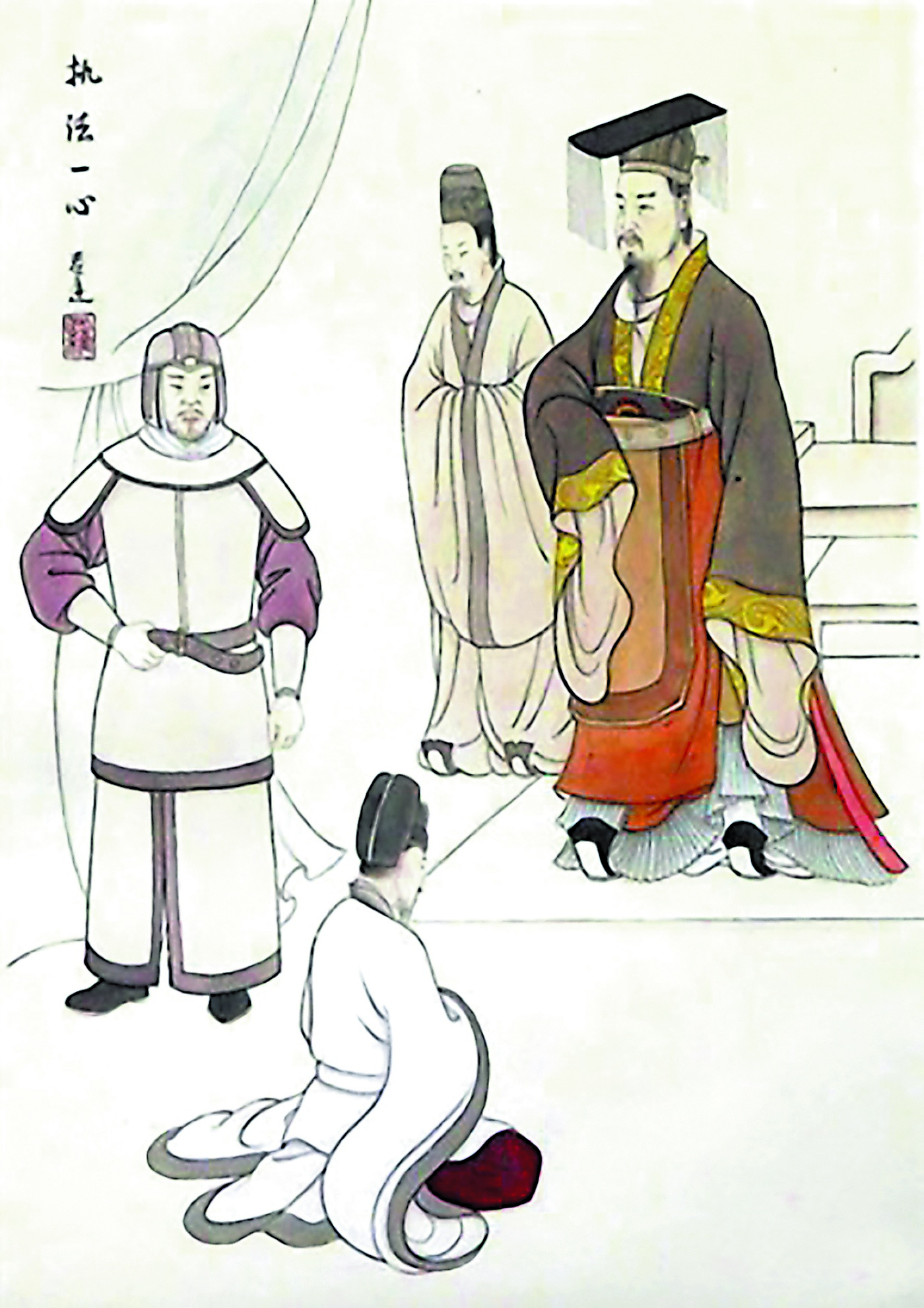 天下大信不可失 公元581年,隋文帝杨坚代周建隋,经过艰苦卓绝的8年,终灭陈统一全国。但各地仍然隐藏着部分反隋势力,且治安也不太好,史书称“盗贼不禁”,为此杨坚很苦恼,他试图通过严刑峻法来减少犯罪。身为刑部侍郎的赵绰进谏:“陛下推行尧、舜之道,多存宽宥。况且法律者天下之大信,难道可以失掉吗!”隋文帝欣然接受了他的意见。赵绰反对最高统治者因个人主观臆断随意更改法律,及时地保护了法律的公信力,是依法治吏、依法治民的前提。