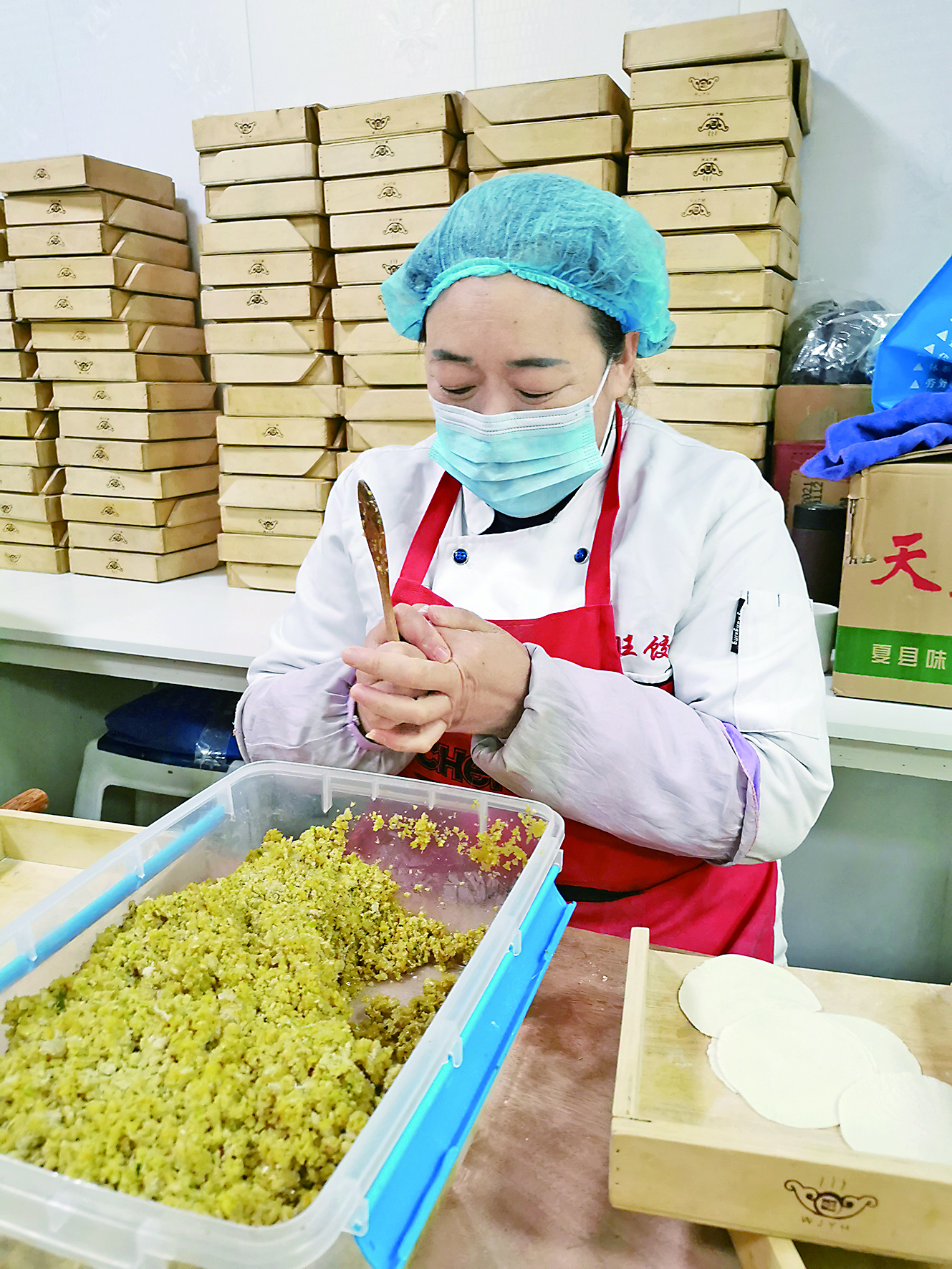据了解,旺饺①号不同于一般的饺子馆,是一家以饺子为主的自助快餐连锁餐厅,餐厅每日提供各种馅料的饺子、凉热家常菜、快餐、酒水饮料共60余种。该店负责人蔡莹告诉记者,店里的饺子都是手工制作。“大厨和面案师傅每天都是6点到店,从和面、擀面皮、拌馅、包饺子……全程手工制作,保留面的筋道、馅的鲜香。”蔡莹说:“开业以来,每天能卖出3000个至5000个饺子,店里有自助小料,顾客可以自己配酸汤或蘸料吃。冬至更要提前准备,保证前来的顾客都能吃到皮薄、馅足的饺子。”