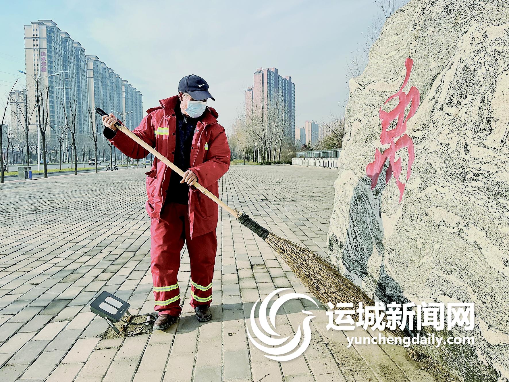 环卫工人在市区禹都公园南门清扫