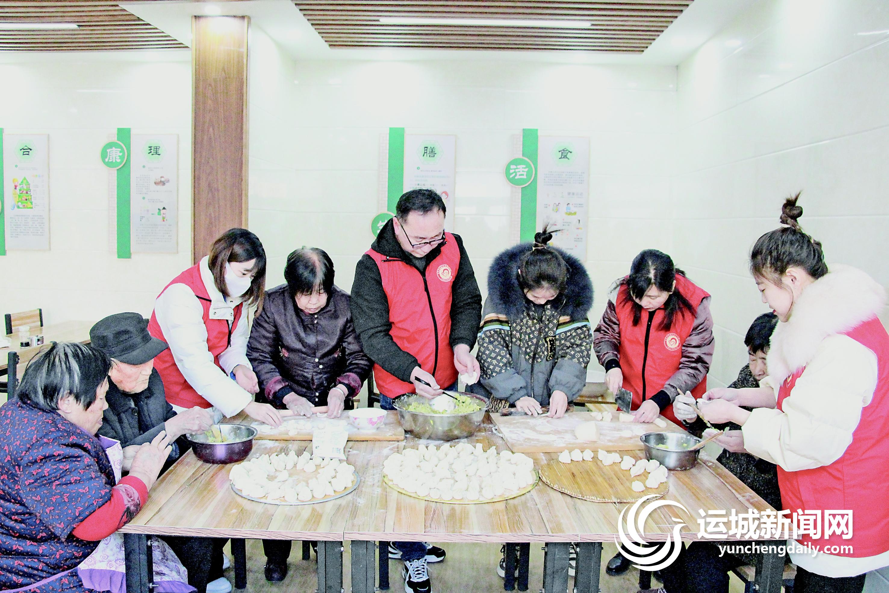 ▲12月20日,闻喜县苗圃社区工作人员和爱心人士,与辖区空巢老人一起包饺子,迎冬至。