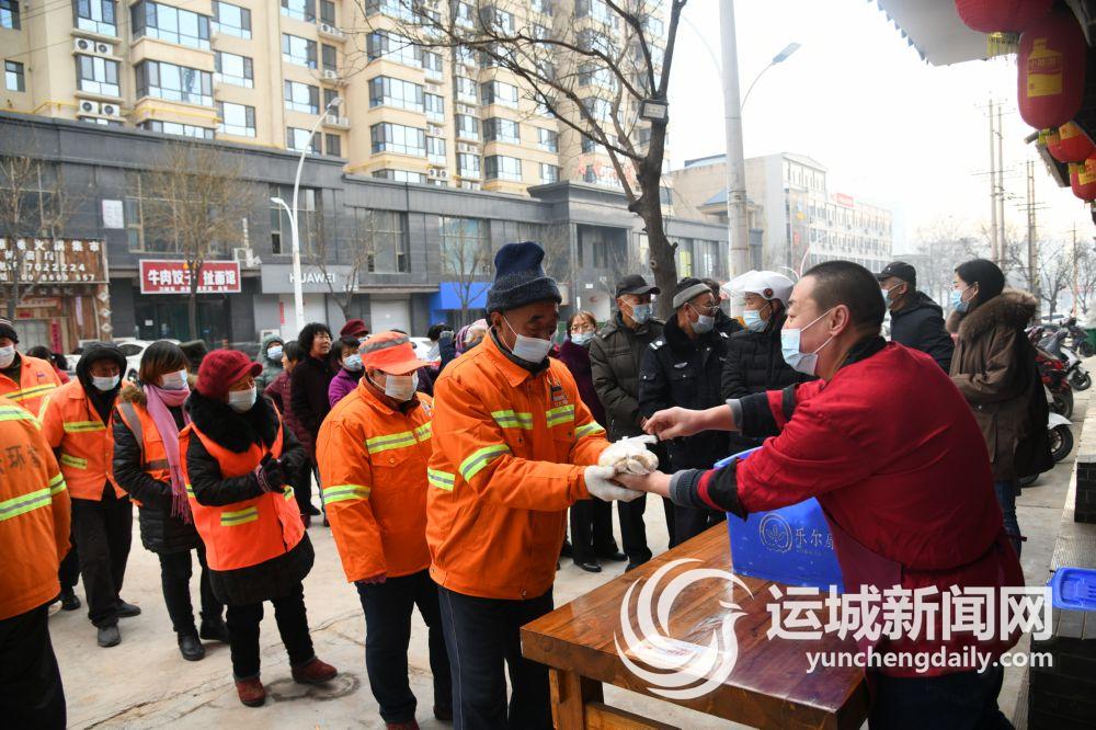 ▲12月20日,闻喜县全嘉福菜馆开展“冬至送温暖”活动,将5000个手工饺子免费赠送给附近社区的保洁人员、环卫工人,以及周边60岁以上的老年人。